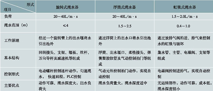 主要有旋转式、浮筒式、虹吸式等,另外也可用堰门来控制排水。